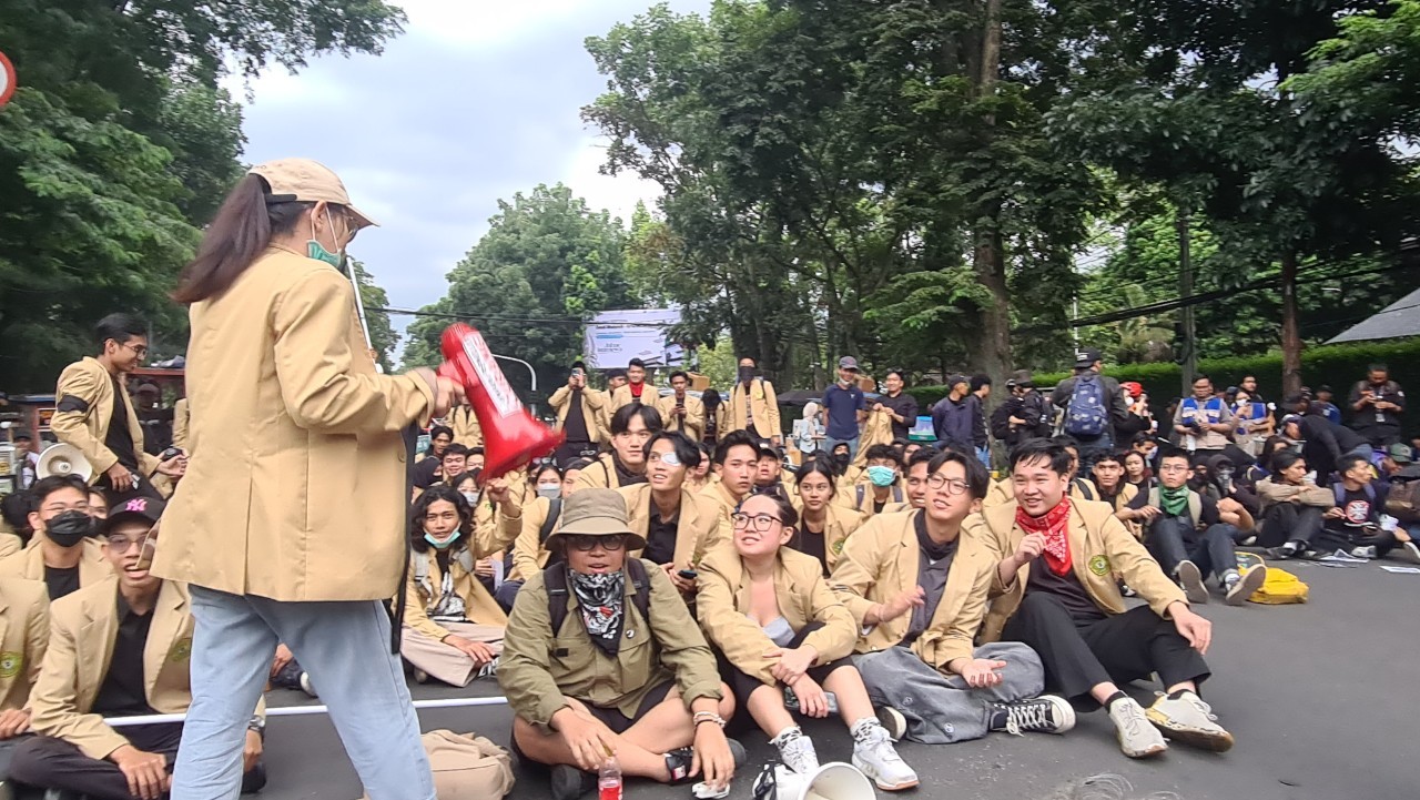 Menjadi aliansi mahasiswa parahyangan yang pertama tiba, salah satu Mahasiswa UNPAR melakukan orasi sebagai pemantik semangat api perjuangan mahasiswa sembari menunggu aliansi mahasiswa lainnya bergabung di lokasi aksi. Aksi kali ini terdapat momen yang cukup menarik perhatian, seorang mahasiswi tengah membaca buku Pramoedya Ananta Toer yang berjudul “Perempuan Remaja dalam Cengkraman Militer”. Saat ditanya alasannya mengapa ia membaca di tengah-tengah aksi, sang puan berkata bahwa membaca adalah salah satu bentuk perlawanan terhadap rezim pemerintahan saat ini.