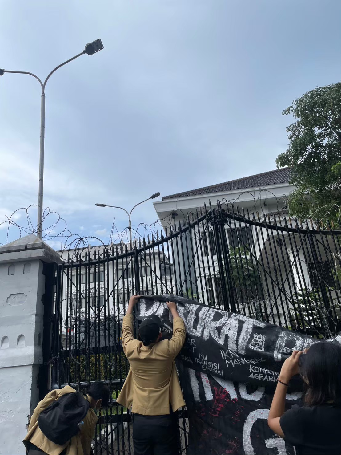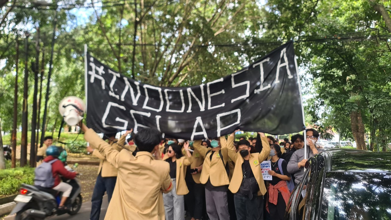 Terik matahari yang menyengat kulit tak menghalangi mahasiswa Universitas Katolik Parahyangan untuk mengikuti aksi Indonesia Gelap. Pukul 14.52 waktu setempat, massa aksi menggelar long march dari titik kumpul menuju titik aksi. Sembari berjalan kaki, mereka melantunkan lagu Ibu Pertiwi bersamaan dengan dibentangnya spanduk, diangkatnya poster, dan dikibarkanya bendera hitam simbol indonesia masih kelam yang tertiup oleh angin. Kedatangan kami di gedung DPRD disambut pasukan berseragam kesayangan kapitalis perampok tanah-tanah rakyat yang rupanya ditugaskan untuk menjaga gedung tersebut.