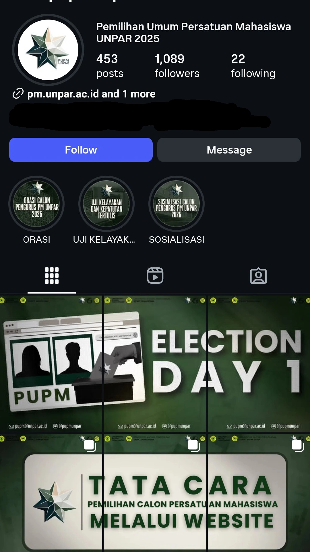 Pemilih mengakses link website PUPM UNPAR yang tercantum dalam Linktree PUPM UNPAR di bio Instagram @pupmunpar, lalu login menggunakan email UNPAR.